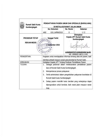 Contoh Sop Pendaftaran Pasien - Sop Pendaftaran Pasien Rawat Jalan Pdf / Scan contoh sop di puskesmas depok i.